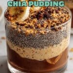 A wholesome and comforting Apple Crumble Chia Pudding combining creamy plant-based chia pudding with a crunchy oat and nut crumble and tender stewed apples, perfect for a nutritious breakfast or snack.