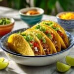 A quick and flavorful recipe for classic beef tacos, featuring seasoned ground beef served in crispy taco shells with fresh lettuce, tomato, shredded cheddar cheese, and salsa for a delicious Mexican-inspired meal.