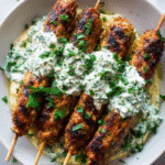 This Chicken Kofta with Garlic Yogurt Sauce is a flavorful Middle Eastern-inspired dish featuring spiced ground chicken formed into oval-shaped koftas, grilled to perfection, and served with a tangy garlic yogurt sauce made with lemon juice and fresh garlic. It's a delicious and healthy main course perfect for lunch or dinner.