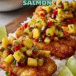 Once cooked, plate your coconut crusted salmon and top with a generous scoop of pineapple salsa. I like to taste the salsa before serving and adjust salt or lime juice, because that brightness really brings everything together. The contrast of warm, crispy salmon paired with cool, juicy salsa makes every forkful unforgettable. Your taste buds will thank you!
