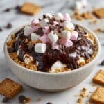 Enjoy a delightful and easy-to-make Cottage Cheese S’mores Bowl that combines creamy cottage cheese with classic s’mores flavors like cocoa, graham crackers, marshmallows, and chocolate. Perfect as a quick dessert or snack with a healthy twist.