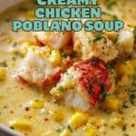 A flavorful and creamy Chicken, Poblano, and Black Bean Soup that combines tender shredded chicken with the smoky heat of poblano peppers, hearty black beans, and a blend of spices. This comforting soup is perfect for an easy weeknight dinner and is enhanced with cream, cheese, fresh lime juice, and cilantro garnish.