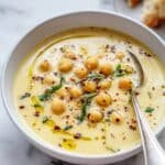 A hearty and flavorful Easy Garlic Chickpea Soup featuring a creamy chickpea purée base, sautéed garlic, and aromatic herbs, perfect for a comforting and nutritious meal.