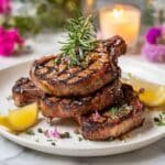 Tender and flavorful grilled lamb chops marinated in a fragrant rosemary garlic mixture, perfect for a quick and elegant dinner.