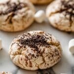 These Hot Cocoa Meringue Cookies are light, airy, and packed with the rich flavor of hot cocoa mix and chocolate chips. Perfectly crisp on the outside and tender inside, they are garnished with chocolate sprinkles and mallow bits for a delightful festive touch.