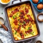 - Make sure your bacon is cooked and crumbled before adding to avoid greasiness in the casserole.