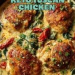 A rich and flavorful Keto Creamy Tuscan Chicken made with tender chicken thighs cooked slowly in a creamy sauce with spinach, sun-dried tomatoes, and Italian seasoning, perfect for a low-carb, satisfying meal.