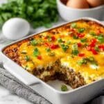 This Keto Egg and Cheese Breakfast Casserole is a delicious, low-carb morning meal packed with eggs, cheese, sausage, and fresh vegetables. Perfect for a satisfying breakfast that fits a ketogenic lifestyle, it combines creamy eggs with savory sausage and melty cheddar in a baked casserole.