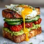 Try swapping the egg for a spicy shakshuka sauce base or add thinly sliced chorizo for a bit of a kick. Maybe sprinkle smoked paprika over the avocado or swap the feta for fresh mozzarella. The beauty here is that the sandwich welcomes creativity — it’s your Mediterranean playground.