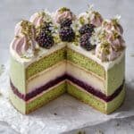 This Pistachio and Blackberry Olive Oil Cake is a moist, tender dessert bursting with nutty pistachios and vibrant blackberry flavors. The olive oil imparts a subtle fruitiness and rich moistness, while the salted blackberry and thyme buttercream adds a perfectly balanced sweet, salty, and herbal note. Finished with fresh blackberries and chopped pistachios, this cake is an elegant and delightful treat perfect for special occasions or any time you crave a flavorful, sophisticated dessert.