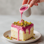 A fragrant and moist Pistachio Rose Milk Cake featuring ground pistachios and delicate rose water, baked to perfection for a tender crumb and a subtle floral aroma.