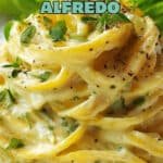 Fettuccine is ideal because its flat ribbons trap the creamy sauce perfectly. However, you can also use tagliatelle, pappardelle, or any wide noodle that holds sauce well.