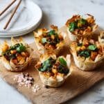 Delight in these Pumpkin Feta Phyllo Cups, a flavorful and elegant appetizer combining tender pumpkin, creamy feta, and fresh spinach nestled in crispy, buttery phyllo pastry. Perfect for parties or a tasty snack, these cups bring a beautiful blend of sweet and savory notes with a lovely crunch from optional seeds on top.