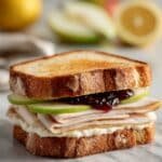 A quick and delicious sandwich combining the sweet and savory flavors of fig preserves, thinly sliced prosciutto, creamy brie cheese, and crisp granny smith apples on a fresh baguette. Perfect for a light lunch or snack, served cold or optionally grilled for a warm, melty treat.