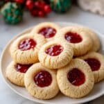 Delight in these classic Raspberry Thumbprint Cookies featuring a buttery, tender cookie base filled with sweet and tangy raspberry jam. Perfectly baked until golden around the edges, these cookies are an irresistible treat for any occasion.