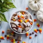 A delicious and fun twist on the classic muddy buddies snack, featuring a chocolate and peanut butter coating with crunchy Chex cereal, mini Reese’s cups, and Reese’s pieces for an irresistible treat.