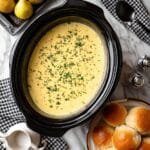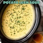 A comforting and creamy slow cooker potato leek soup made with tender leeks, Yukon gold potatoes, chicken broth, and finished with rich heavy cream, perfect for a cozy meal.