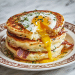 A delicious and hearty Pancake Sandwich combining fluffy buttermilk pancakes, savory ham, melted Cheddar cheese, a perfectly cooked egg, and sweet maple syrup. This easy-to-make sandwich is perfect for breakfast or brunch, delivering a perfect blend of sweet and savory flavors.