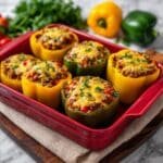 Bake covered: Cover the baking dish with foil and bake in the preheated oven for 30 minutes to allow the peppers to soften and the flavors to meld.