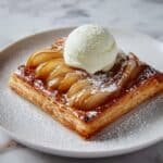 These Upside Down Apple Tarts feature caramelized apple slices nestled beneath a flaky puff pastry crust, creating a delightful combination of sweet and buttery flavors. Perfect as a warm dessert or a cozy treat, they are easy to prepare and sure to impress with their beautiful presentation.