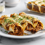 These protein-rich vegan enchiladas are made with lentils, vegetables, and wholesome ingredients. They are gluten-free, plant-based, healthy, nut-free, and perfect for lunch or dinner. The dish features a flavorful enchilada filling combined with a spicy enchilada sauce, baked to perfection and topped with vegan cheese.