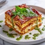 This lasagna keeps well in the fridge for up to 4 days, making it a fantastic make-ahead meal. Simply cover tightly and reheat individual slices in the oven or microwave. For long-term storage, freeze it before baking (wrap tightly in foil and then in plastic wrap) and store up to 3 months. When ready, thaw overnight in the fridge and bake as directed, adding a few extra minutes to the bake time if needed to warm through evenly.